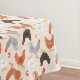 Vieh, Landhühner und Hahntischdecke. Spaßhuhnmuster auf hellem beige Hintergrund, französischer Landentwurf.