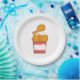 Fried Huhn mit Eimer, anpassbare Hintergrundfarbe und Text.