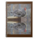 Dieses Wendelheft ist mit einem Stein aus Stein besetzt, der auf einem Blumentopf mit Reflektionen sitzt!