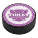 Hühner mit Sticks Eishockeyschläger. Hockeypuck in der Regelgröße - 2,875" Durchmesser x 1" Höhe; 5,5 oz. Vollfarbiger Druck auf einer Seite, ideal für die Anzeige oder für die Autografierung. Einzigartige Geschenkidee für die Hockeymutter in Ihrem Leben!