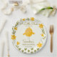 Hühnerfarm Tiere whimsical Baby Dusche mit Monogramm Papier Teller Vorlage, eine niedliche Hühnerfeder Blumen geschlechtsneutrale Baby Dusche personalisierten Papier Teller. Gelb-grünen Hühnerbaby-Dusche bedruckte Party-Teller, Federbaby-Dusche personalisierte Tischdekoration, Hähnchen-Baby-Duschpapier-Teller, Hühnerfeder-Baby-Dusche personalisiertes Party liefert
