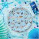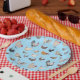 Handgemalte Wasserfarben-Hühner bilden dieses glückliche Muster auf weichem, blauen Hintergrund. Ideal für Ihre Lieblingshähnchenmutter, Hühnerliebhaber, zukünftigen Bauer. Inspiriert von der schönen Herde auf unserem kleinen Familienbetrieb.