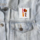 Im Nachhinein würde ich eher den Button mit Magnet bestellen... damit dieser bei jeder Kleidung angebracht werden kann. Sehr gute Bildqualität