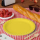 Teller mit gelbem Papier für Ihre Themenveranstaltung
