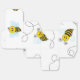 Auf einem soliden, weißen Hintergrund heben sich mehrere Bienen vom Fliegen ab und verließ eine Spur ihrer Brisanz mit ihren charakteristischen Farben wie Schwarz und Gelb und lächelnden Gesichtern. Dieses niedliche und zarte Design ist ideal für diejenigen, die Tiere Liebe und Hummelschutz. Die subtile Farbkombination ist perfekt, um eine einfache und subtile Ästhetik zu erhalten.