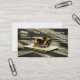 Bumble Bee Business Card: Eine lebhafte Szene mit einer Hummel, die auf einem Kartenstapel sichtbar ist. Die Biene ist mit blühenden, gelben und schwarzen Streifen geschmückt, und ihre Flügel sind ausgestreckt. Die Karten unter der Biene haben Text und Symbole, was darauf hindeutet, dass es sich um Visitenkarten oder Werbematerial handeln kann. Der Hintergrund ist durch Lichtstreifen verwischt, was dem Bild ein dynamisches und schnelles Gefühl verleiht.
