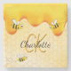 Gelber, weißer Hintergrund mit einem Bienenwabenmuster und glücklich lächelnden Hummeln. Dekoriert mit süßem, goldenem Honig, der tropft. Personalisieren und fügen Sie Ihren Namen und Ihre Monogramm-Initialen, goldene und schwarze Buchstaben. Der Name wird mit einem handgeschriebenen Stilskript geschrieben. Ideal für Ihre Zuhause im Sommer!