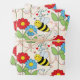 Eine niedliche, gelbe und schwarze Hummel mit roten Herzen und roten und blauen Blumen. Schöne Sommer Garten grafische Abbildung. Helle Farben mit dem Slogan/ Sprichwort "Bee Liebe" (Be Liebe) spielen auf Wort.