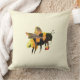Hummeln trägt Pollen. Hummeln sammelt Nectar und Pollen - BuchIllustration aus einem Bilderbuch "Die belebende Hummel" (geschrieben und illustriert von Julia Doria). Bienen fliegen oft mit Pollenkorben herum. Die Hummel ist die größte Biene und der wichtigste Bestäuber. Hummeln-Thema für Bienenliebhaber. Hummelkissen auf blassgelbem Hintergrund.