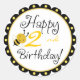 Gemütliche Hummeln mit geschossenem Kantenrahmen Happy Birthday Aufkleber.