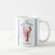 Die Coastal Lobster Beach House Kaffeemaschine ist mit einem weißen Hintergrund mit einem roten Maine-Hummer und marineblauen Seilstreifen in Aquarellfarbe gestaltet. Personalisieren Sie es mit Ihrem Familiennamen und dem Datum in einem klassischen marineblauen Schriftart. Ideal für Zuhause und Hütten am Meer.