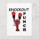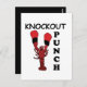 Lobster Boxing Knockout Potcard entworfen von Nisha Prabhu. Rote Hummer-Abbildung in Boxhandverpackung mit Text ''Knockout Punch''. Verpassen Sie nicht, mit unserer Lobster Boxbox Knockout Pocket Postkarte einen Haufen Spaß zu haben! Dieses spielerische Design zeichnet sich durch einen entschlossenen Hummer aus, der einen Klotzprall wirft, was es zu einem einzigartigen und auffälligen Weg macht, Ihre Grüße oder Wohlwünsche zu senden. Ob Sie Boxenthusiast sind oder einfach nur Meereslebewesen der Liebe, diese Postkarte steht Ihnen sicher zur Seite und bringt dem Empfänger ein Lächeln ins Gesicht. Mit dieser lustigen und unvergesslichen Postkarte teilen Sie sich Kampfgeist und Spaß!