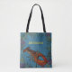 Dieser Totbeutel zeigt lebende Hummer im Set des Ozeans vor einem blauen Hintergrund mit Algen- und Korallenakzenten. Die Tasche ist bereit, mit einem Namen in fett kalkgrüner Schrift personalisiert zu werden.