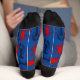 Dunkelblaue gemusterte Socken für Damen und Herren mit Hummer- und Krabbendesign. Dunkelblaue Hummer und rote Krabben knistern über einer königsblauen Hintergrundfarbe. Zehen und Heelse sind schwarz. Ein Geschenk für alle Muschelliebhaber, Meeresfrüchte-Koch oder Seefahrer.