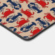 Hummer und Krabben Muster Schreibtischmatte. Tan Farbe mit blauen Hummern und roten Krebsen in vertikaler und horizontaler Mischform.