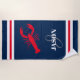 Hummermarineblau- u. -ROTstreifenBadetuch des kundenspezifischen Monogramms rotes. Cooles personalisiertes beachtowel für ihn. Machen Sie Ihren eigenen Strand oder Pooltuch für Sommer. Elegantes Geschenk für Freunde und Familie. Kundengerecht in den verschiedenen Farben. Marineblau- und -WEISS-Farbkombination. Noble Typografieschablone. Addieren Sie Ihr eigenes Namens-, lustiges Zitat oder Sprichwort. Groß. Seegeschenkideen für Männer und Frauen. Einzigartige Geschenke für Geburtstag, Hochzeit, Flitterwochen, Ruhestand und andere Gelegenheiten. Machen Sie ein für ihn, sie, Paar, weds eben, Ehemann, Ehefrau, Co-Arbeitskraft, Bruder, Großvater, Bootskapitän, Chef etc. Chicozeanthemaentwurf.
