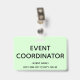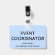Dieses konservative Abzeichen-Design beinhaltet die Meldung "EVENT COORDINATOR". Ein solches Abzeichen könnte vielleicht dazu verwendet werden, zu zeigen, dass der Träger mit einem Event verbunden ist. [~Z0000307]