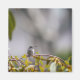 Ein Foto eines Kolibri, das auf dem Ast eines grünen Strauchs in einem Garten steht. Image Copyright ©2024 Kimberly J Tilley. zazzle.com/store/developingnature
