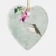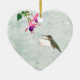 Ruby-throated hummingbirds gather along the Gulf Coast throughout the months of August and September, preparing for their annual migration to their winter home in Mexico. While preparing they seek-nectar filled blooms of plants like the fuschia and trumpet vine to fuel them on their journey. This design features a female ruby-throat approaching a tempting pink and purple fuschia bloom.