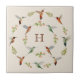 Decorative Ceramic tile with your initial and hand-painted rufous and Allen's hummingbirds.