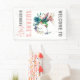 Herzlich willkommen bei Ihren Geburtstagsfeiern mit diesem coolen Banner mit einem Aquarellkotflügel mit Blumenkranz auf weißem Hintergrund - individueller Text in Grau und Rosa.