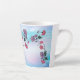Personalisieren Sie diese einzigartige "One of a Kind" Hummingbird Latte Tasse! Es verfügt über einen schönen Hummingbird Sipping Nectar aus den schönen großen Rosa- und Lila-Blumen...auf einem rosa und Lila Cloud-Hintergrund! Originelle Kunstmalerei des Künstlers Kerry Miller.