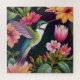 Puzzle ist ein Acrylgemälde eines Kolibris, umgeben von einer bunten Vielfalt an Blume. Dieses Vogelkunstwerk ist hell und fröhlich! Wunderschönes Frühling- oder Sommerblumenthema für Vogelliebhaber.