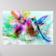 Farbenfrohe Digitalmalerei eines Kolibri, der kurz davor ist, auf einer großen, lebendigen Blume zu knabbern