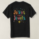 Das T - Shirt-Design für "Jokes and Jewels" zeichnet sich durch eine spielerische und skurrile Abbildung aus. Ein glänzender Diamant, der mit einer Krone geschmückt ist, wird mit tiefem Lachen dargestellt. Die Lachslinien des Diamanten erstrecken sich in eine Perlenhalskette, die ein visuell ansprechendes und humorvolles Bild schafft. Das Design verbindet die Begriffe Luxus und Spaß und macht es zu einem einzigartigen und auffälligen Werk