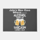 Fügen Sie Ihren Getränken Spaß mit diesem humorvollen, weißen Text Mann Höhle Sarkasmus-Design mit dem Satz "Alkohol geht in Sarcasm kommt aus." Der kühne weiße Text verleiht Erwachsenen eine witzige Atmosphäre zum Genießen. Ideal für soziale Ansammlungen oder für eine persönliche Touch. Personalisieren Sie diese Vorlage und/oder bearbeiten Sie sie mit Designtools für einen markanten Look.