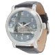 Uhr, Vintage Männeruhr mit schwarzem Lederarmband