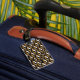 Ein Muster von humu (Humuhumunukunukuapua'a) Riff wedgetail Triggerfish, ein Korallenrifffisch Hawaii-Ozeans, auf Schwarzem.