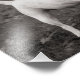 Ein Schwarz-Weiß-Foto eines Hundes im Park, der von den Eichhörnchen fasziniert war. Glücklicherweise liefen sie gerade rechtzeitig auf einen Eichenbaum.