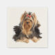 Yorkshire Terrier Showklasse mit rotem Bogen auf weißem Hintergrund