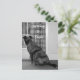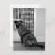 Schwarzweiß-Foto eines australischen Schäferhirten, der aus dem Fenster "gewartet für den Weihnachtsmann" schaut.