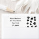 Niedliche Hundepapierdrucke im Cartoon. Bearbeiten Sie Text, um diese Rücksendeadressen-Aufkleber personalisiert zu machen. Schwarze Pfoten-Version. Geschenkidee für Hundefreunde.