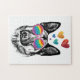 Ein niedlicher Hund mit Herz und Brille ist eine ideale Geschenkidee für Hundefreunde.