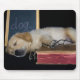 Golden Retriever Jungfrau mit Kalkboard und altem Buch.
