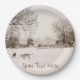 Hunde, die Winterschneeszene-Landschaftsmalerei sp Pappteller