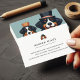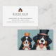 Eine spielerische Visitenkarte mit Hunden in Top-Hüten, ideal für Heimtierfirmen wie Hundeschuhwanderern, Groomeren oder Haustier-Boutiquen. Eine Seite zeigt zwei Hunde in Oberhüten, während auf der Rückseite ein Single mit einem Bowlerhut über den Kontaktinformationen steht.