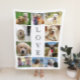 Eine Foto-Sake-Decke zum Feiern der Hunde in Ihrem Leben mit einer 10-Foto-Collage und "LIEBE" in der Mitte in elegantem Text niedergeschrieben.