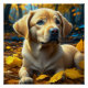 Niedlicher Hund, der in einem gelben Herbstlaub Poster spielt.