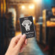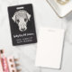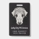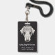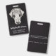 Ein Hundetrainer mit einem Vintagen Hundeportrait, Holzschnitt-Kunstdruck und Abzeichen für Mitarbeiter. Ideal für Tiermessen und Adoptionen.