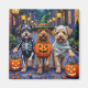 In verspielten Halloweenkostümen gekleidete, bezaubernde Lowchen tragen Kürbiseimer, während sie unter dem mondbeleuchteten Himmel tricksen oder behandeln. Dieses festliche Design hebt die lilionenartige Rasse, den fröhlichen Ausdruck und die liebevolle Persönlichkeit hervor, die perfekt die sprichwörtliche und dennoch lustige Atmosphäre Halloween-Abends einfängt. Eine wunderbare Feier für Hundefreunde und Halloween-Fans gleichermaßen.