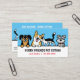 Eine originelle Visitenkarte im Cartoon-Stil für Ihr Haustierpflegesegment! Dieses farbenfrohe Design zeigt niedliche Hunde und Katzen mit mehr Zeichnungen auf der Rückseite und Platz, um leicht mit Ihren Informationen personalisieren. Adorable Corgi, lustige langhaarige Dackel, liebenswerte Tuxedokatze, Schnauzer, Spitz und Schokolade Labrador Zeichnungen. Ideal für Hundeschuhwanderer, Trainer, Tiersitter, Tierärzte, Haustierärzte und vieles mehr. Machen Sie einen unvergesslichen ersten Eindruck mit einer lustigen Visitenkarte, die Ihre Kunden will, mit Freunden behalten und zu teilen.