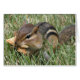 Hungriger Chipmunk im Gras, der Lebensmittel in seine Mundkarte steckt