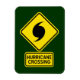 Hurrikan Crossing - Gelbe und schwarze Straßenschilder-Design mit dunkelgrünem Hintergrund.