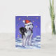 Animal Parade Festival Husky Hund Weihnachtsgeschenke und Zubehör, die Ihnen von Stellen Sie sich das! Design zeigt unsere originelle Kunst eines niedlichen, schwarz-weißen sibirischen Huskys, der für den Urlaub mit einer kräftig roten Weihnachtsmannmütze auf seinem Kopf und einem festlich grünen heiligen Kranz auf seinem Hintern mit einem fröhlichen roten Bogen bedeckt ist. Auf vielen Urlaubskarten und Geschenken steht der lustige Schwarz-Weiß-Hund in einer schneebedeckten Landschaft mit einem von Traci Van Wagoner gemalten sternenblauen Nachthimmel. Diese lustige Haustierkunst ist perfekt für Husky-Liebhaber, Hundeliebhaber und humorvolle Tierkunstliebhaber jeden Alters. Nehmen Sie an der Tierparade teil und bringen Sie ein Lächeln in das Gesicht von jemandem, den Sie als Liebe kennen, mit einem Geschenk unseres festlichen Husky-Hundes, der für die Ferien verkleidet ist. Woof!