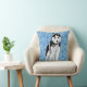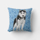 Dieses ungewöhnliche Kissen, zeigt mein Bild eines schwarz-weißen Husky vor einem Hintergrund von hellblauen Schneeflocken auf blauem Hintergrund. Dieses Kissen würde ein schönes Geschenk machen oder eine erstaunliche Ergänzung zu jedem Zimmer.