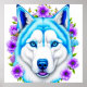 Husky Hund mit blauen Augen und Blume Poster